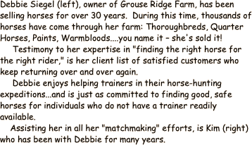 HOME • HORSES FOR SALE • ABOUT US • TESTIMONIALS • HORSES SOLD • ARTICLES • OUR VET • FAVORITE LINKS • DIRECTIONS